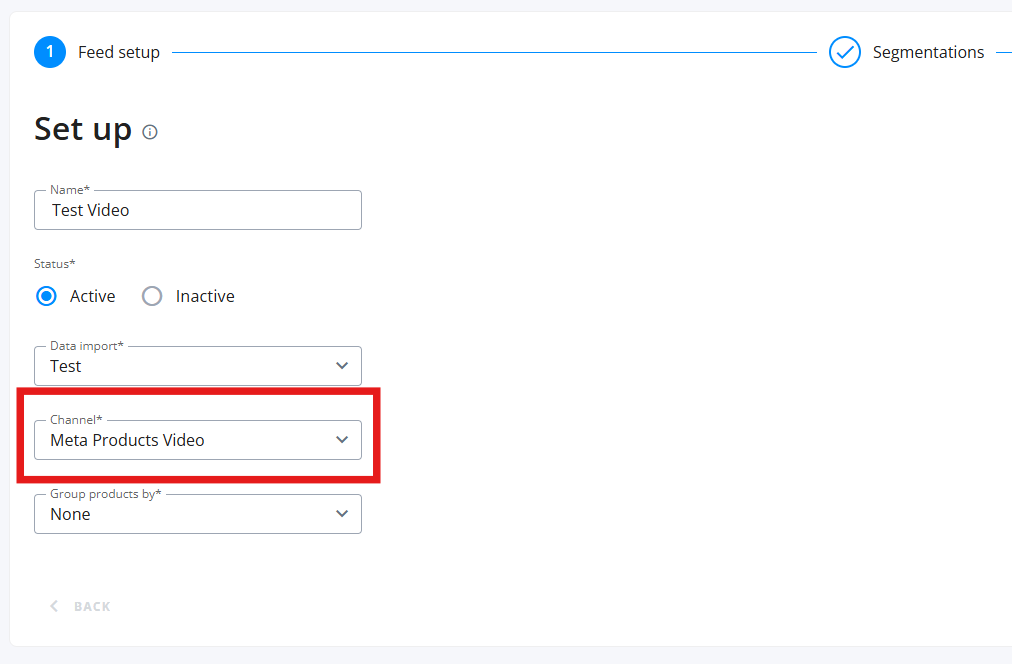 - Después, crea un Optimized Feed con canal de salida Meta Products Video y aplica optimizaciones de forma habitual.