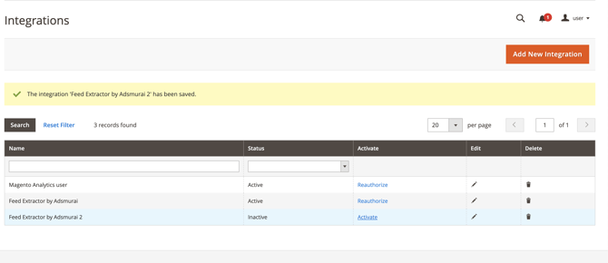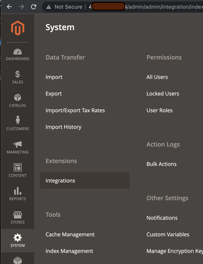 - Accedere a System > Extensions > Integrations